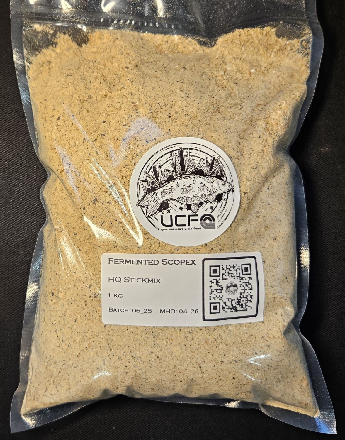Der passende Stickmix zum Fermented Scopex-Boilie. Auch dieser Stickmix verfolgt weitestgehend den „Basemix-Ansatz“. Das bedeutet, dass sich die allermeisten Zutaten des Boilies auch im Stickmix wiederfinden.