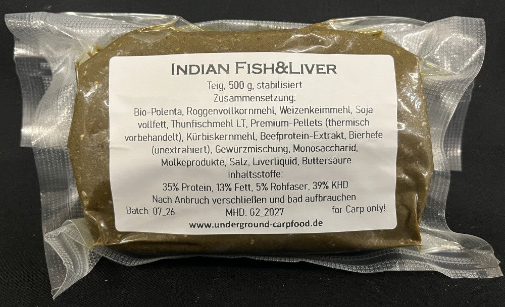 Der passende Teig aus dem originalen Indian Fish&Liver-Mix. Geboosted mit einer Extraportion Attraktoren und sanft stabilisiert. Ideal, um damit den Hookbait zu ummanteln, aber auch lose mit zugefüttert ein Gamechanger!